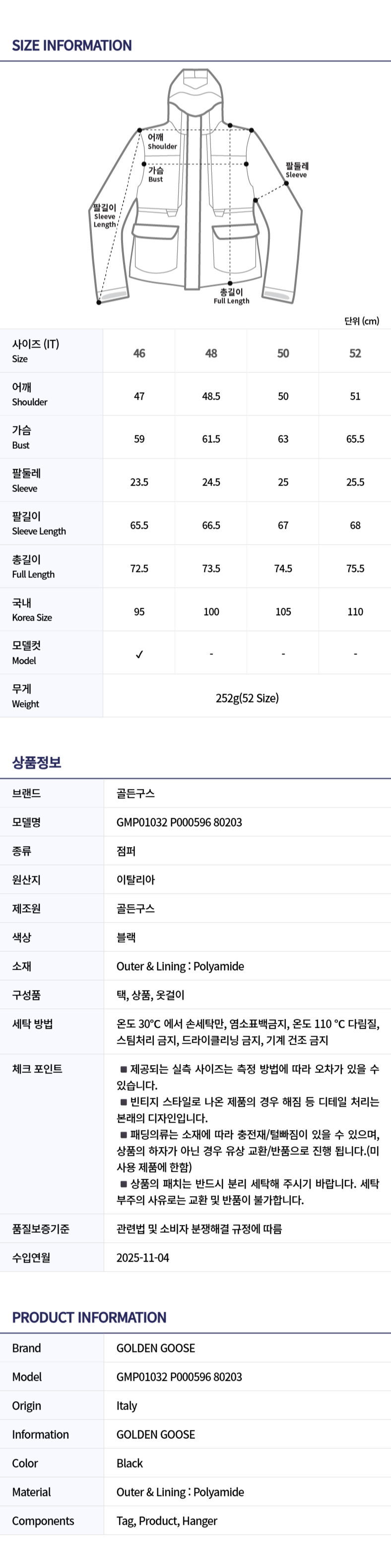 골든구스 남성 후드 바람막이 점퍼 GMP01032 P000596 80203